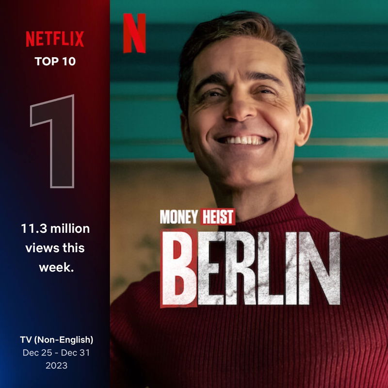 Na het immense succes van La casa de papel (2017–2021) zal het niemand verbazen dat ook Berlín (2023– ) het uitstekend doet bij Netflix-abonnees. De spin-off is nog geen week beschikbaar op de streamingdienst en heeft nu al wereldwijd de toppositie veroverd in de Netflix top 10.