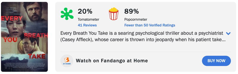 Vanaf deze week kijk je op Netflix naar Casey Affleck en Michelle Monaghan in Every Breath You Take (2021). Hoewel de thriller vanuit critici niet bepaald hoog scoort, zijn kijkers met een score van 89% op Rotten Tomatoes wél enthousiast over de spannende film. " Als je van spanning houdt, is het zeker de moeite waard om te kijken. Geweldige cinematografie, prachtig landschap," klinkt het op sociale media. Inmiddels staat Every Breath You Take op plek 4 in de Netflix top 10.
