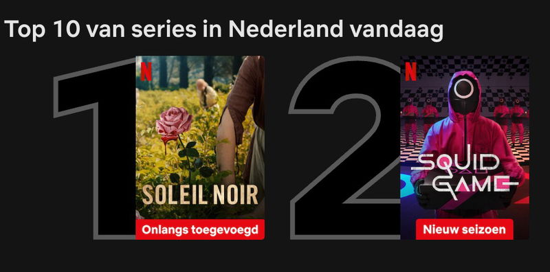 Netflix lijkt een nieuwe hit in handen te hebben met Soleil Noir (2025– ). De nieuwe Franse mysteryserie staat na enkele dagen op de streamingdienst nu helemaal bovenaan in de Netflix top 10 en stoot daarmee Squid Game (2021–2025) van de troon.